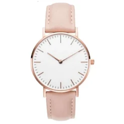 Simple Elegant Watch for Women 2023 Pink White Leather Watchband Dress